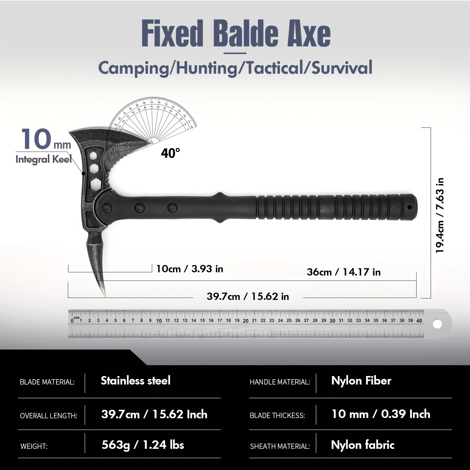SPECIFICATIONSItem ID: UU227966Material: Stainless SteelOrigin: Guangdong,ChinaKHU Survival Camping Axe with Sheath - Stainless Steel Blade, Nylon Fiber HandleSKU : 1707939,48C$PrixLivraison incluseColor*BlackQuantité*Ajouter au panier