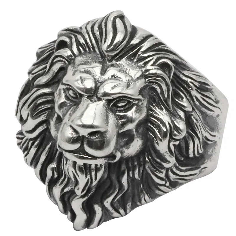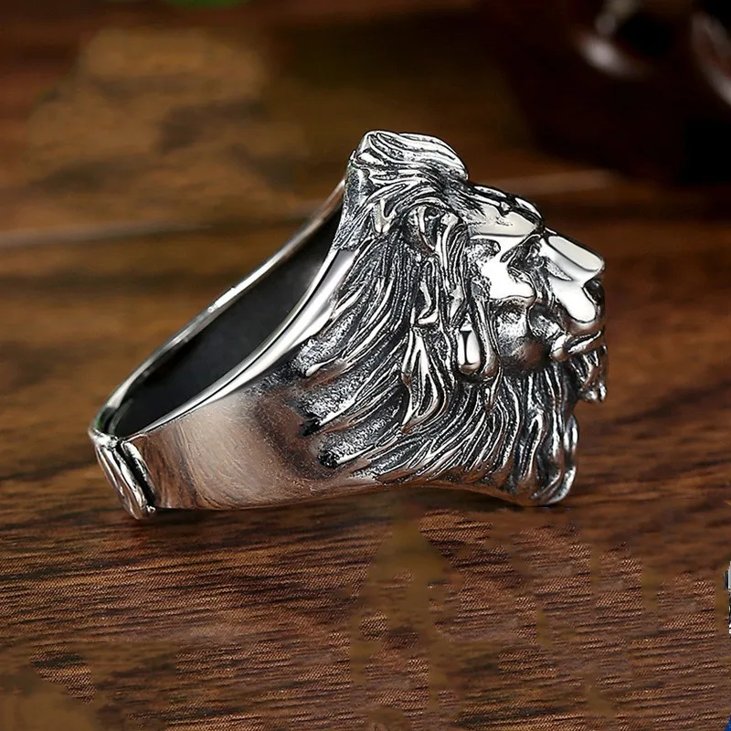 Retro Lion Head Large Ring For Men Silver Color Punk Gothic Open Ring Handmade J